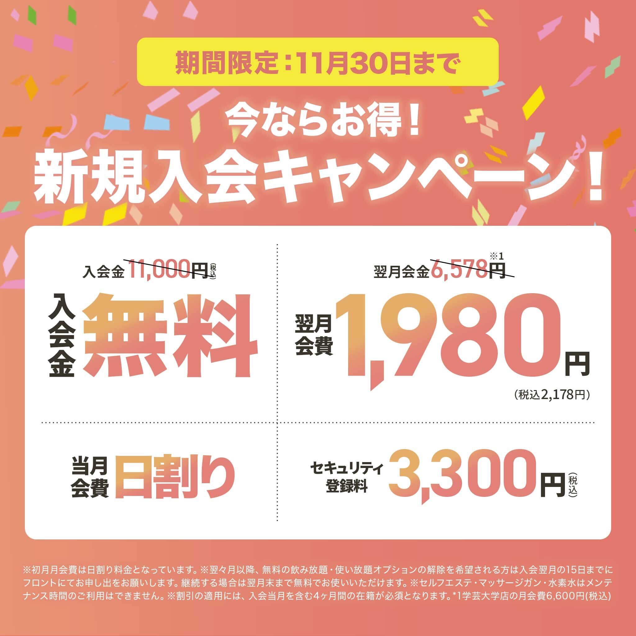 ※ご入会時には、当月日割り分と翌月分のお支払いが発生いたします。